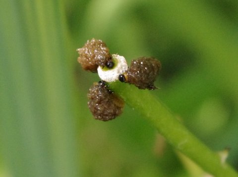 Cette "bouillie" sur eux n'est autre que leurs excréments. Ils se protègent des prédateurs avec.