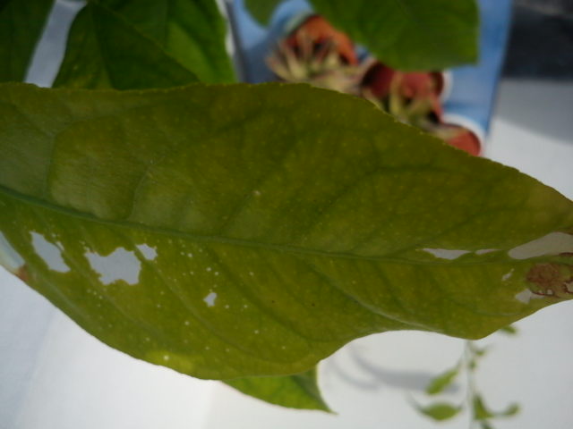Bonjour, suite à mon rempotage et la mise en extérieur de mes citronniers et 2 semaines d'absence aussi, j'ai constaté que certaines feuilles avaient des tâches blanches. Quelqu'un peut-il me dire ce que cela peut être?