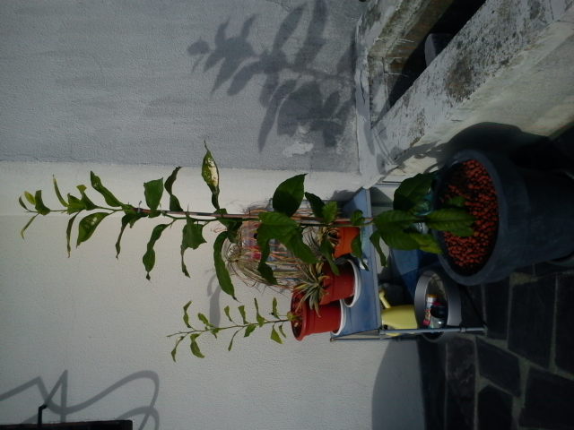 A la fin de l'été voir début automne je couperai le grand à environ 1 mètre pour lui permettre de faire d autres branches. Un jour je boirai un ti'punch avec un citron de mes citronniers!!!!!!