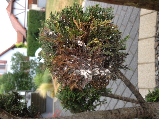 mon arbuste( je crois un thuya) est entrain de pourrir