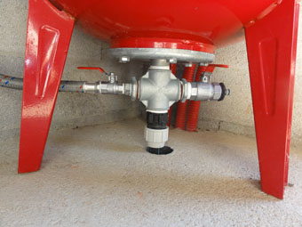 Le dessous du ballon avec l'arrivée venant de la pompe (située à 25m environ) et sortant directement du sol