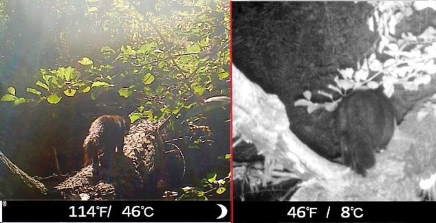 J'ai posé mon piège photo devant un tronc qui enjambe la rivière au fond de mon jardin. On a déjà photographié des écureuils, rats, martre, geai... Et voilà sur quoi je tombe ce matin.