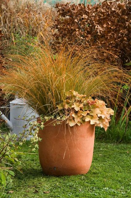 dans l'idée des pots, tu peux aussi faire quelques potées avec des heuchères (encore :wink: ) et graminées. Tu peux les garder d'une année sur l'autre et l'été les mettre à un autre endroit. Les hellébores, je ne connais pas leurs possibilités en pot.