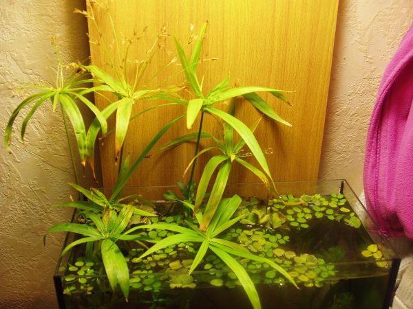 J'avais essayé d'en mettre, des papyrus dans mon aquarium mais j'ai capitulé car il a un couvercle et dès que les feuilles sortaient de l'eau elles cramaient sur les néons.