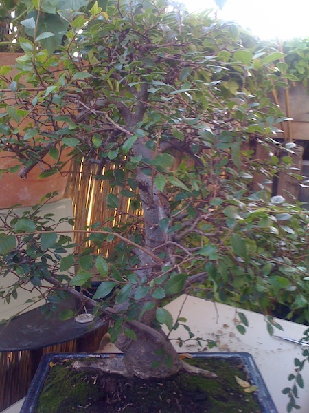 dernièrement je pensais m'acheter des pots pour mes plantes intérieures, et en faisant un petit tour vers les plantes à 50%, je suis tombé sur un magnifique bonsaï, orme de chine si je dit pas de bêtise, comme quoi en fin de saison ça vaut la peine de fouiller un peu, on peut tomber sur des bonnes surprises! :D