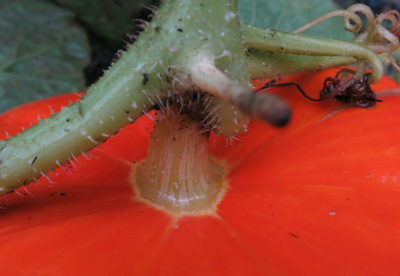 J'avais lu que le potiron est mûr lorsque le pédoncule se "déssèche"? Ce n'est pas encore le cas (cf photo) mais puis-je déjà le couper et le rentrer en espérant qu'il continue à mûrir à l'abri ? Ou est-il prudent de le laisser en croisant les doigts pour que la pluie ne le ruine pas ? Ou est-il imperméable