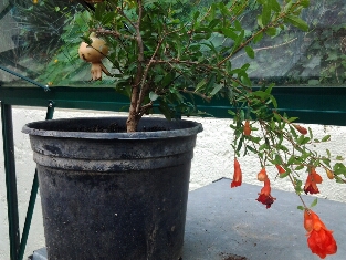 Je l'ai acheté il y a 5 ans comme "grenadier à fleurs". Il a de belles fleurs orange vif et c'est la 1ère année qu'il produit trois grosses grenades. Je ne savais pas s'il y avait des différences