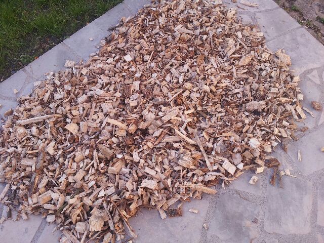C'est un peu ce que j'ai, mais en plus fin : je récupère les copeaux de bois de chauffage de mon voisin. J'en ai 14 grands sacs, souvent mélangés avec des morceaux d'écorce, alors je trie.
