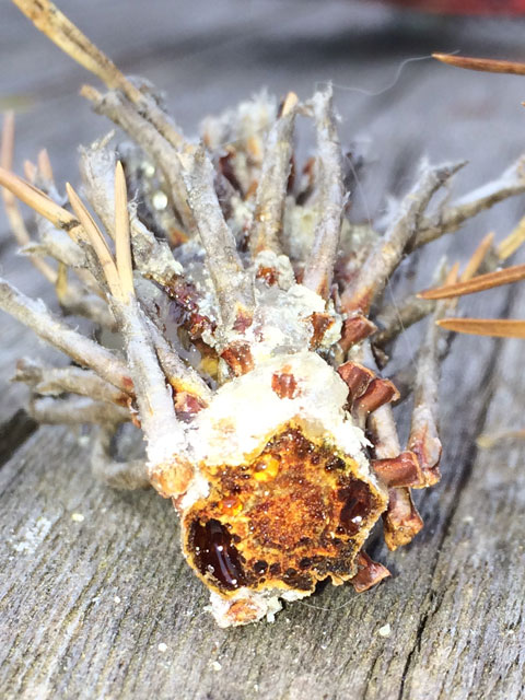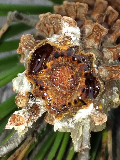Par contre on voit de la résine s'écoulant des bourgeons, ce n'est pas normal pour cette espèce. N'il y aurait'il pas des tordeuses dans les bourgeons ?