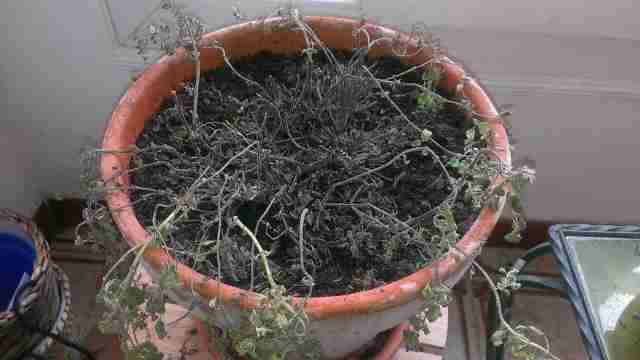 Ci-joint la photo de ce qu'il reste de mon origan...Cela faisait un mois que j'essayais de le sauver mais jour après jour les tiges ont séchées pour aboutir au désastre visible sur la photo jointe.