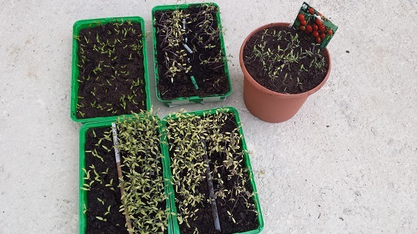Ca fait plusieurs années que je fais mon potager avec mon pére, on a toujours acheté les plants, mais cette année j'ai fait de semis de tomates: Cerises, Marmandes, Coeur de Boeuf et Roma, des plants d'aubergines et de poivrons.