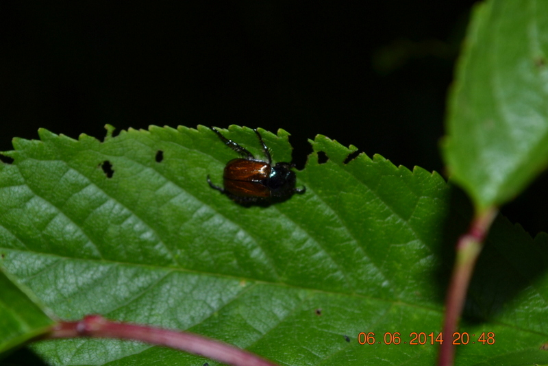 sur un jeune cerisier des insectes mangent les feuilles comme il est planté depuis l'année dernière il apeu de feuilles je joint une photo de celui-ci qui me semble etre un jeune hanneton a votre avis? j'ai pulverise de l'eau avec du savon noir il on l'air d'etre parti.