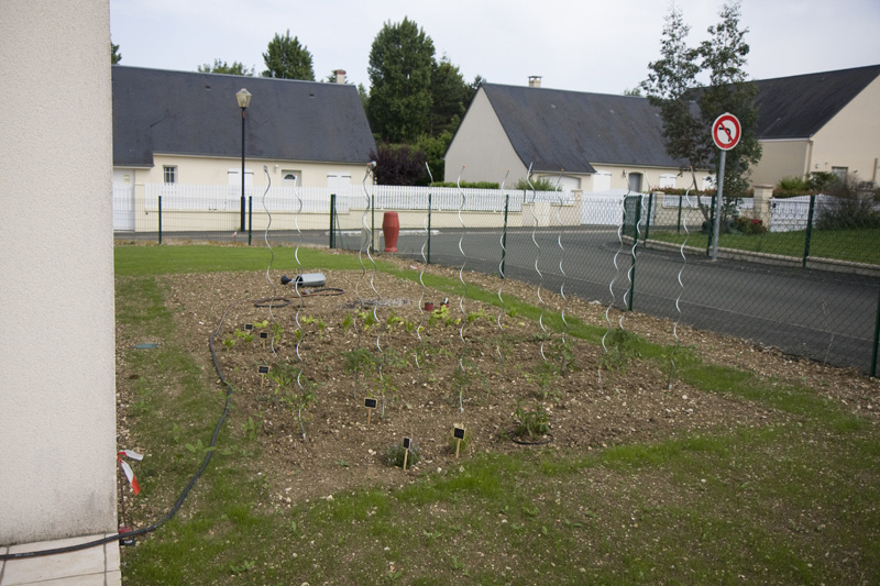 Un tout petit potager de 3x8m qui peut être alimenté en eau via une bouche d'arrosage placé à proximité gérée par un programmateur (une électrovanne lui est consacrée).