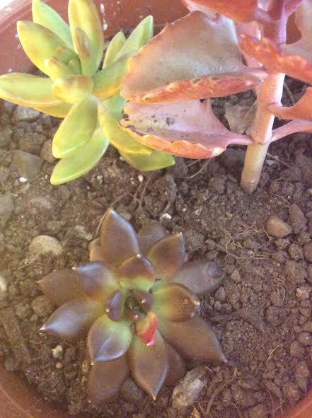 en bas un echeveria ,peut etre un black prince.