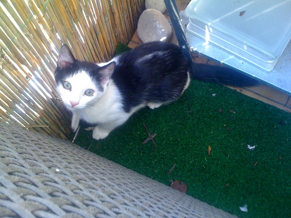 cela faisait déjà un certain temps que je me posais des questions sur un voisin de l'immeuble d'a côté qui laissait sortir sans un minimum de surveillance une petite chatte de 3 mois. Et cette la semaine passée, quand je passais devant elle me suivait tout le temps et m'appelait. En fait, après m'être renseigné auprès des voisins, il se trouve que ces gens sont partis en vacance en laissant ce bébé seul dehors, sans nourriture et eau.