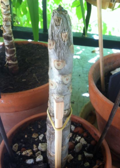 J'ai un souci avec ma bouture de plumeria rubra. J'ai reçu la bouture (sans racines) il y a quelques semaines, je l'ai laissée sécher quelques jours puis je l'ai mise dans un pot avec un mélange sable/terreau. J'ai légèrement vaporisé et recouvert le pot d'un plastique, que j'enlevais de temps en temps pour renouveler l'air.