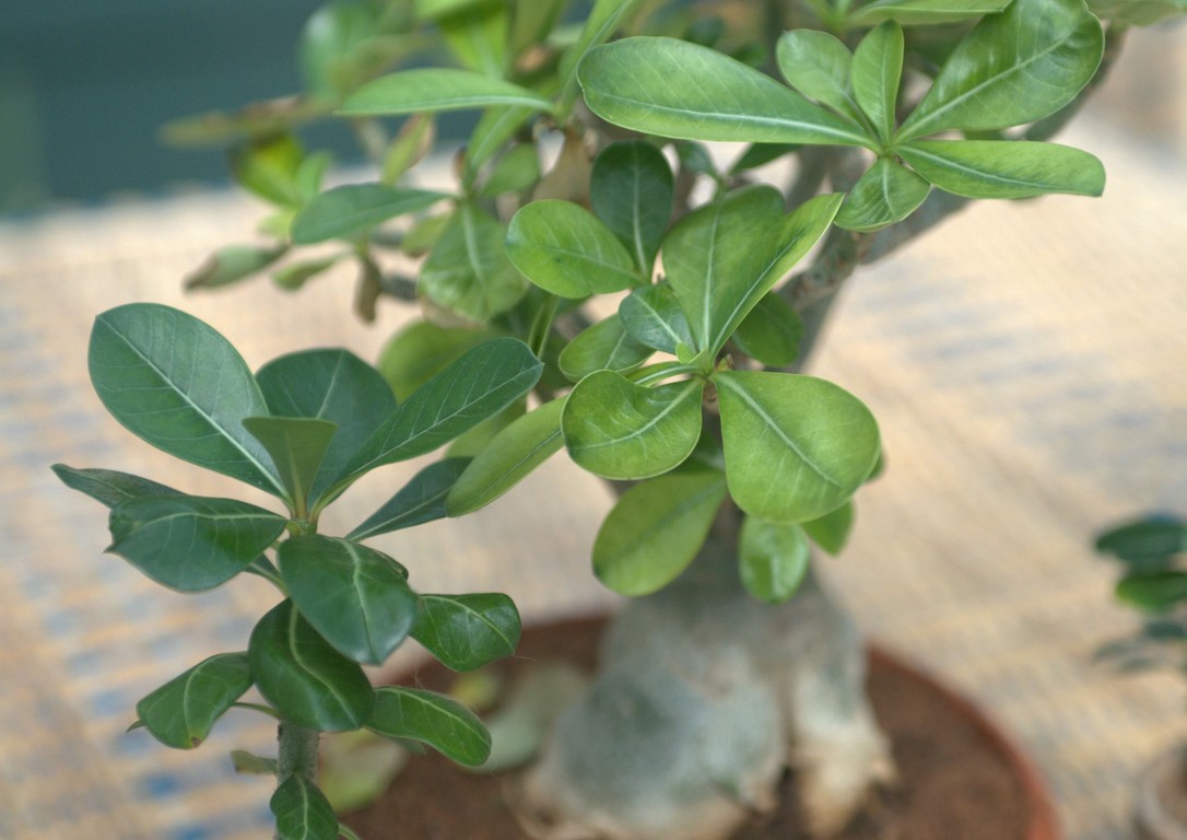 Mon gros adenium a les feuilles claires et qui sèchent et tombent. Pourtant il a le même arrosage que les petits issus de semis qui sont sur la même photo, même composition et même fréquence. Avez-vous une idée de ce qu'il a ?