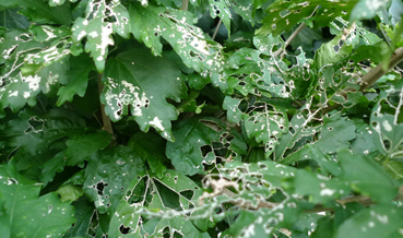 Je ne sais pas, ça ressemble soit à du grignotage, soit à une tache blanche qui use et nécrose la feuille pour faire un trou!