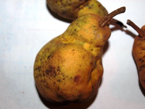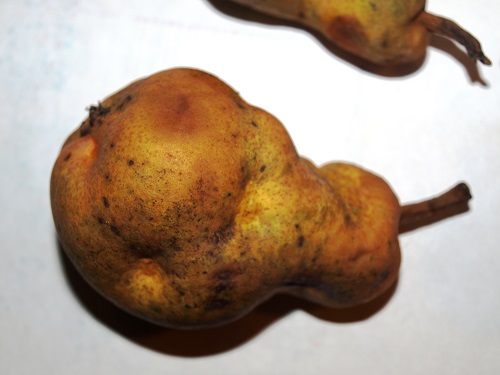 Les poires sont déformées et sous la déformation, il y a des masses constituées de gros grains durs. Les petites poires sont irrécupérables et bonnes à jeter.