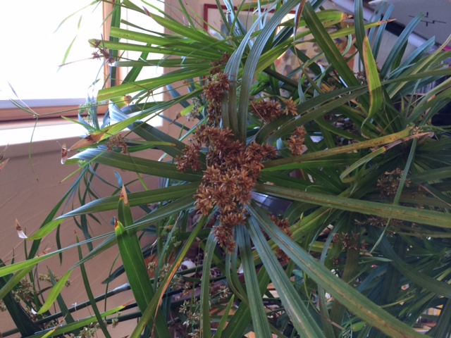 Je viens de rentrer mon papyrus (je ne sais malheureusement quelle variété c'est). Il a énormément profité du soleil dans le jardin : il a grandit et fait de très belles nouvelles tiges. Il a également "fleurit" et malheureusement, certaines fleurs sont marrons, comme desséchées. De nombreuses feuilles sont elles aussi toutes sèches. Que dois-je faire ? Couper les extrémités des feuilles sèches ? Couper les tiges des fleurs fanées à la base ? J'y tiens beaucoup et je ne veux pas faire de bêtises.