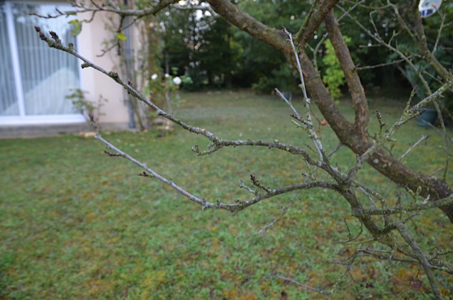 J'ai fait de même pour le poirier qui ne donne que des fruits morts nés - si ça ne suffit pas je le couperais, il est sans doute trop proche d'un sapin et pousse penché.