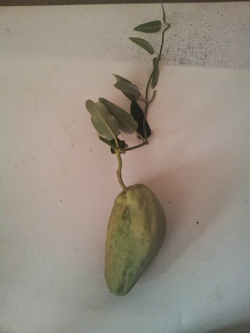 Est ce que quelqu'un connait ce drôle de fruit? A été cueilli sur une plante grimpante dans la région de Perpignan.