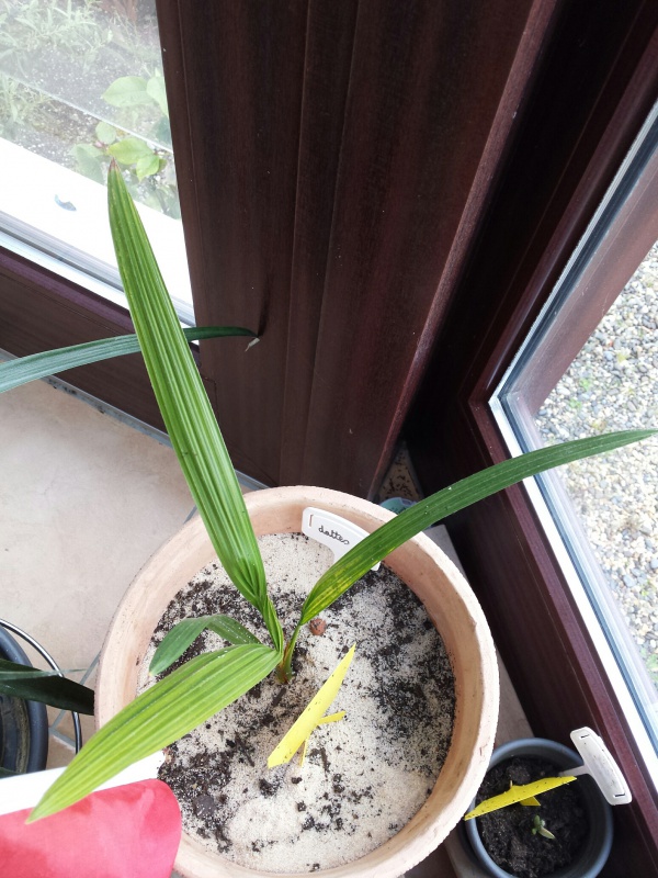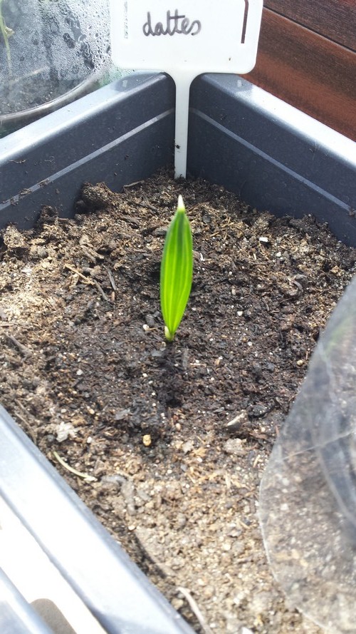 Ton dattier vient bien. La première vraie feuille ne devrait pas tarder.