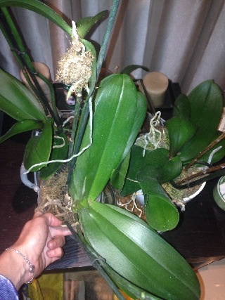 J'avais lu qu'il fallait au moins 3 racines et 3 feuilles. Je laissais les 2 keikis sur la maman jusqu'à ce que je m'apperçoive que la maman qui avait l'air en pleine forme en voyant ses belles feuilles, n'allait pas tarder à décliner vu l'état des racines.