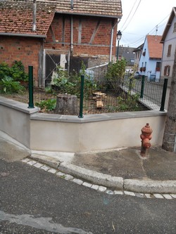 Le mur a été fait par un artisan, le dos de Mr. le fait trop souffrir pour pouvoir soulever les sacs de béton.... et puis on aurait mis 1 mois alors que là, en 8 jours, c'était fini. Mais on a mis le grillage nous même !