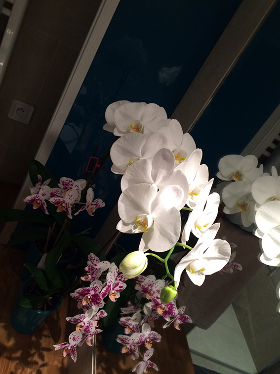 La quasi totalité de mes orchidées (beaucoup de phal) sont actuellement en fleur...