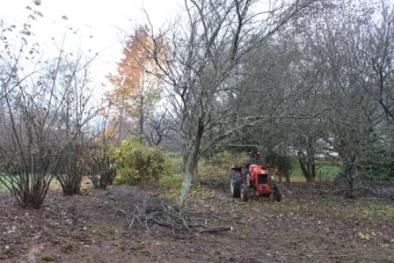 - Les alentour du verger dégagé d'un côté, il ne reste plus qu'à déboiser l'autre...