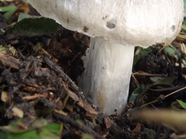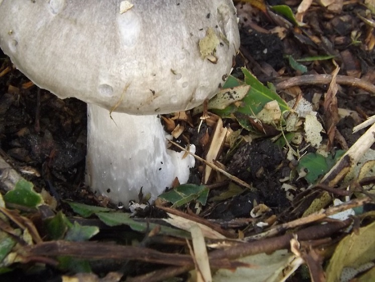 Peut être une volvaire, en tout cas une Agaricacée, on aperçoit du mucus au pied, peut être une trace de voile ? D'autres clichés serait le bien venue.