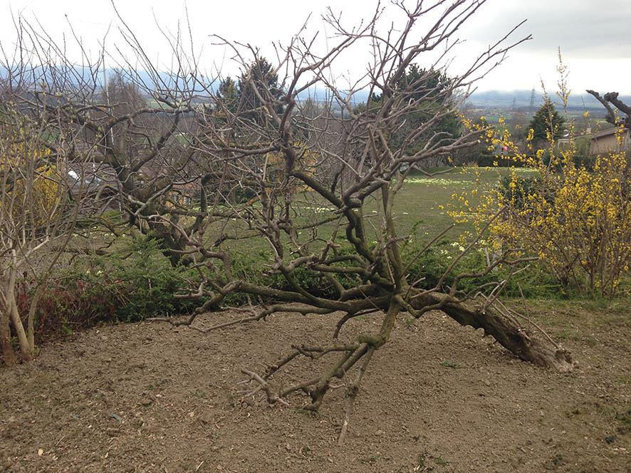 Dans ce jardin il y a un petit arbre que j'ai "élagué" comme je pouvais en novembre, probablement trop court mais bon il envahissait tout le jardin...