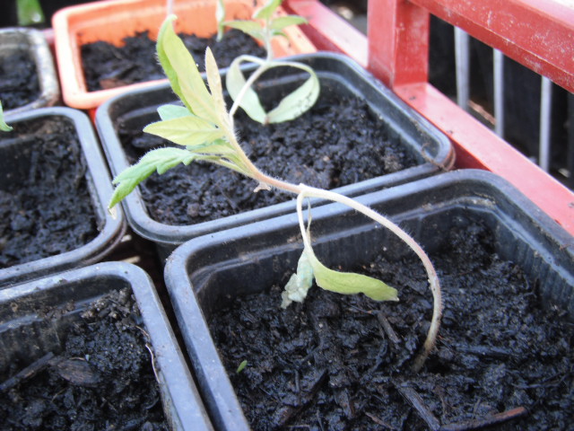 La tige de mes jeunes plants s'amincit et finit par casser. Je ne les perds pas tous mais j'y ai laissé quelques plans de cornichons, un ou deux plants de concombres et quelques plants de tomates.