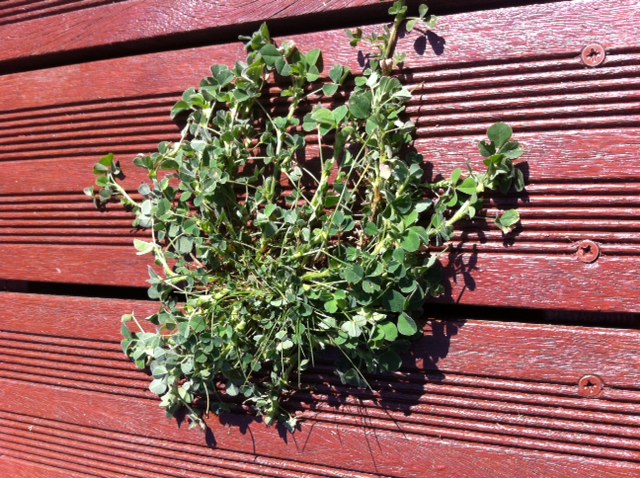Si oui, ce n'est pas du trèfle mais une légumineuse quand même. Chez moi on l'appelle "la minette". Il me semble, mais je n'affirme rien que c'est plutôt une sorte de luzerne.