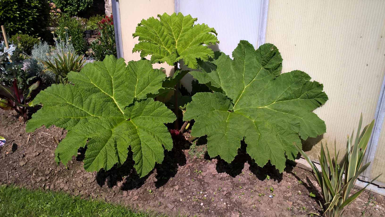 Je vous donne aussi des nouvelles de ma Gunnera, l'année dernière celle de sa plantation elle ne m'a fait que trois feuilles pas très grande, une 30e de cm, j' étais assez déçu et cette année au printemps elle a explosée ! des feuilles d'un mètre de diamètre j'étais vraiment surpris. A la plantation j'ai fait une fosse d'un mètre de profondeur et j'ai installé une bâche que j'ai percée pour éviter les surplus d'eau en hiver. Le printemps pluvieux que nous avons eu lui à bien profiter, je l'ai installer sous les égouttins de ma serre elle récolte pas mal d'eau quand il vient un orage et je l'arrose tous les 3 jours avec 20 litres d'eau. Elle a ainsi tenu tout l'été avec quand même deux feuilles qui ont grillées lorsqu'il a fait chaud mais est repartie de plus belle par la suite.