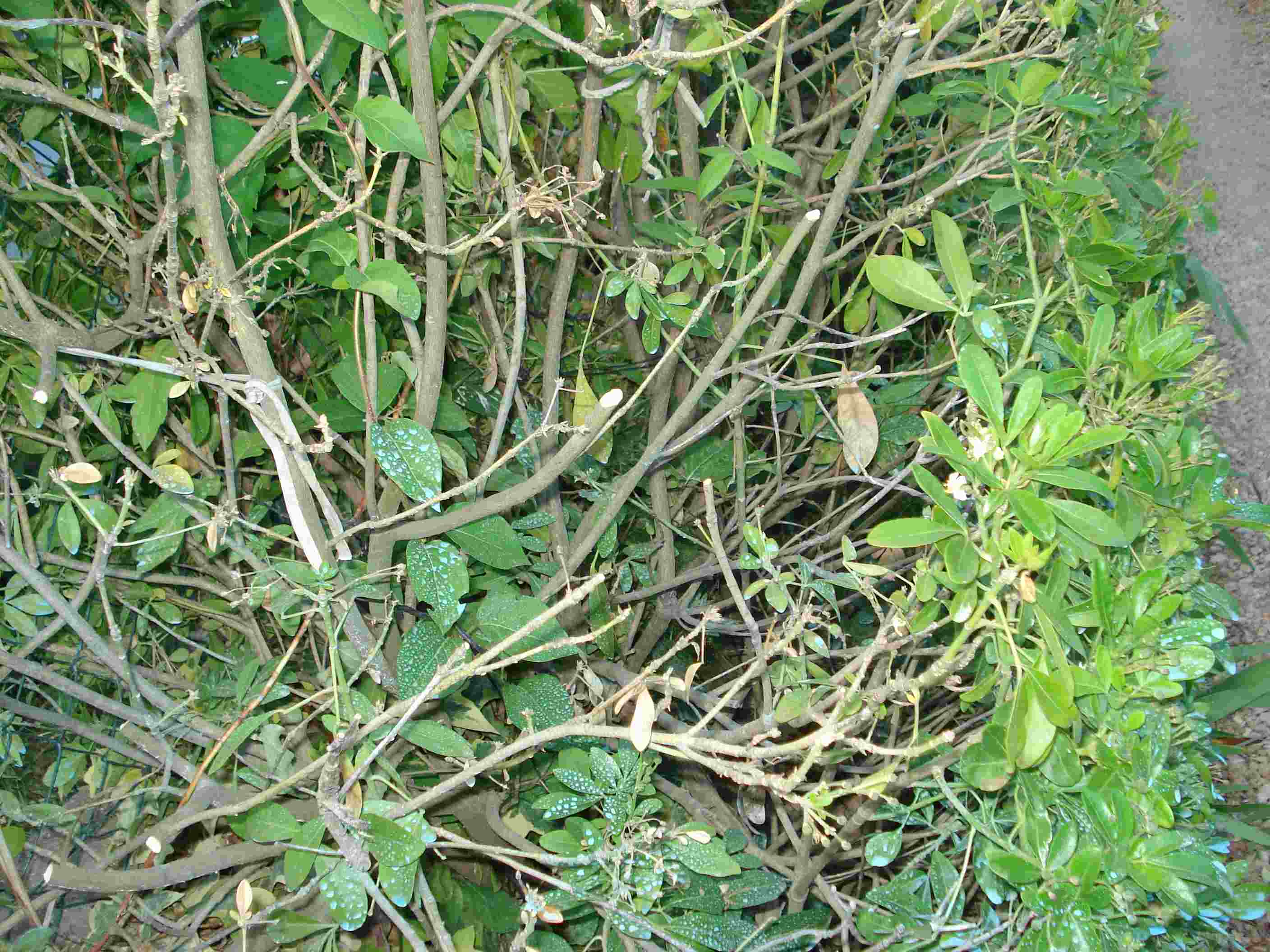 Mon collègue a un oranger du Mexique qui perd ses feuilles: elles jaunissent et tombent. Les rameaux prennent des plaques noires. Il lui semble pour l'instant que ça ne touche pas toute la plante. Un traitement à la bouillie bordelaise vient d'être fait. Il ne l'arrose jamais (sauf après le traitement). La plante a environ 8 ans. Elle est dans une haie mixte, taillée régulièrement et les autres plantes voisines ne sont pas malades (dont un autre oranger du Mexique et un Teucrium fruticans)