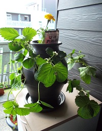 Quant à l'arrosage c'est un peu le souci avec ce type de pot, il faut arroser bien au centre pour humidifier le substrat tout entier, les fraisiers vont créer de nouvelles racines qui les stabiliseront mieux dans le pot'