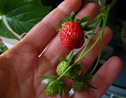 Le tube central est une très bonne idée. Mes feuilles se redressent, de nouvelles feuilles montrent le bout de leur nez et les fraises commencent à rougir !!