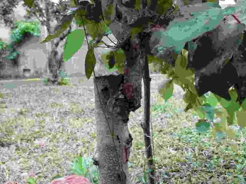 Enlever le mastique et recouvrir les 2 coupes du porte-greffe de bouillie bordelaise épaisse et pâteuse.