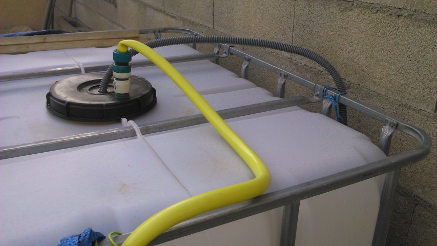 donc j'ai juste raccordé un tuyau sur cette arrivée et je remplis ma cuve, puis de la cuve je vais à la pompe