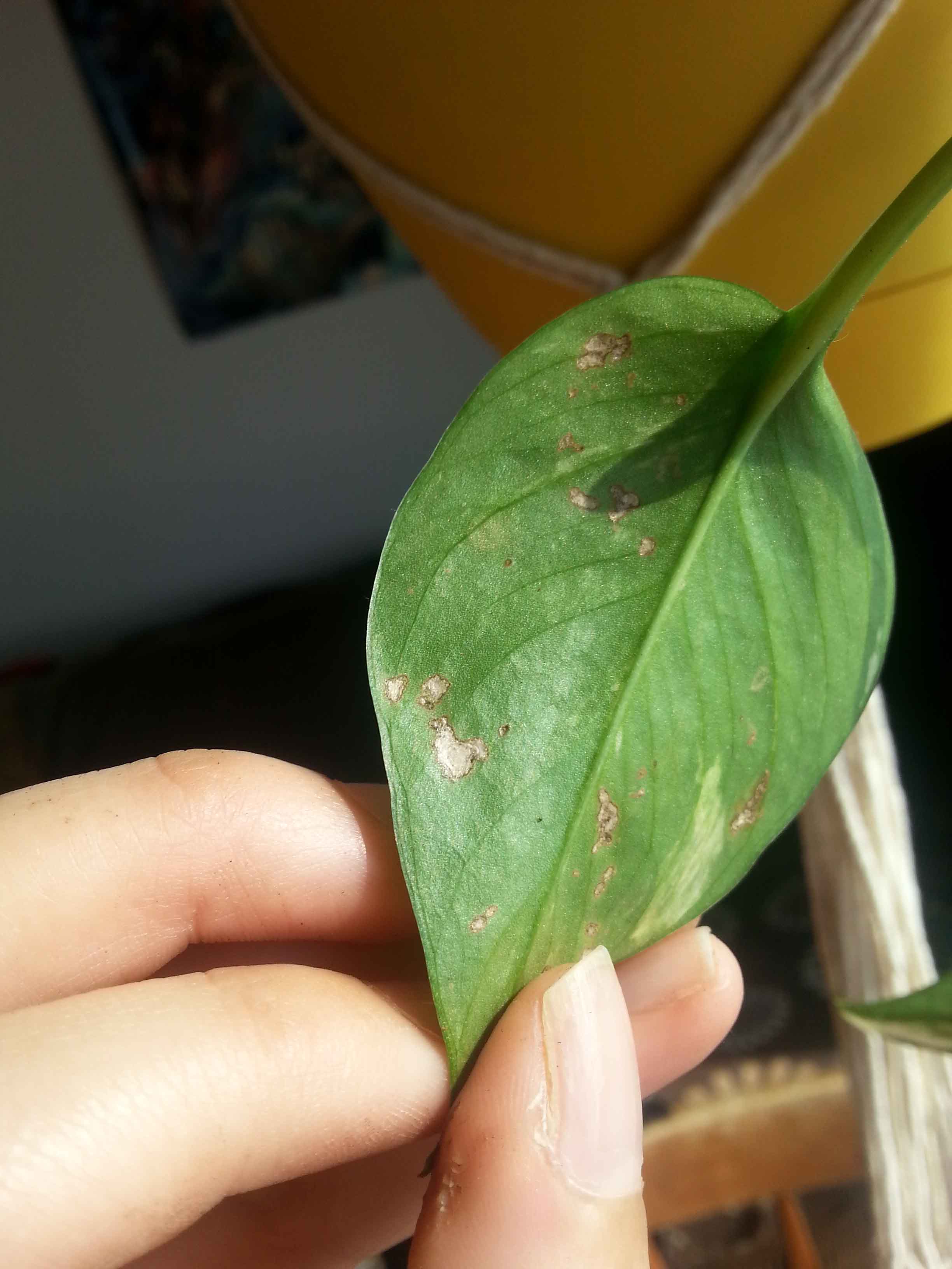 J'ai un problème depuis quelques mois déjà. Des tâches argentés apparaissent sur les feuilles de mes plantes. Au début, il n'y avait qu'une plante de touchée. Il y avait plusieurs tâches argent sur chacune de ses feuilles. Au bout d'un certain temps, il se forme un trou à l'endroit où il y a les tâches argents et les feuilles dépérissent. J'ai perdu cette plante, mais maintenant le problème touche toutes mes autres plantes. J'ai peur de toutes les perdre!