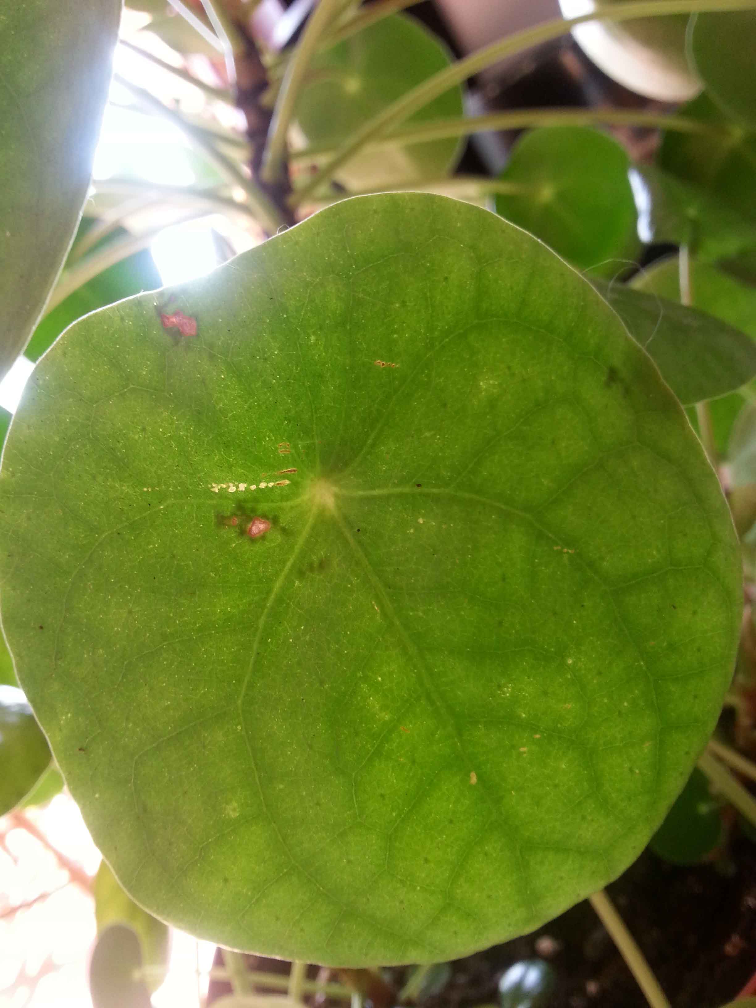 tâches argentées forme irrégulières à l'envers de la feuille