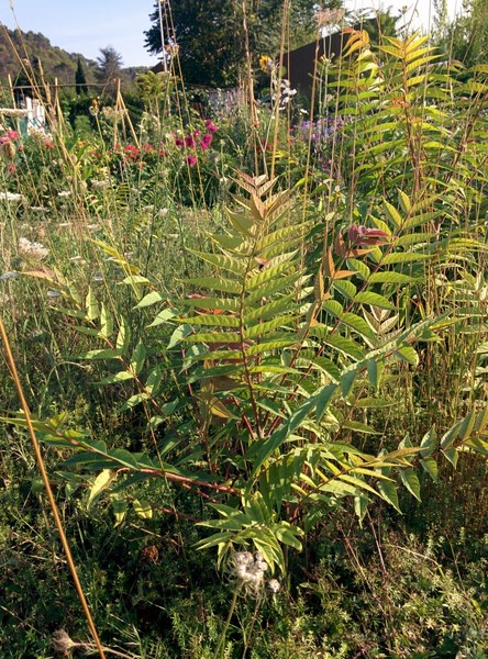 Je trouvais que les feuilles ressemblaient au sumac de virginie (qui est quelque peu, d'ailleurs, aussi envahissant).