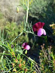 - avec Lathyrus clymenum, mais 4 folioles petits à pétiole très large , plus courts que les fleurs; fleurs bicolores pourpres et violettes