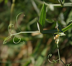 Les feuilles ont 2 folioles longs et larges arrondis au bout, terminées par une vrille ramifiée , et ont des stipules longs et linéaires.