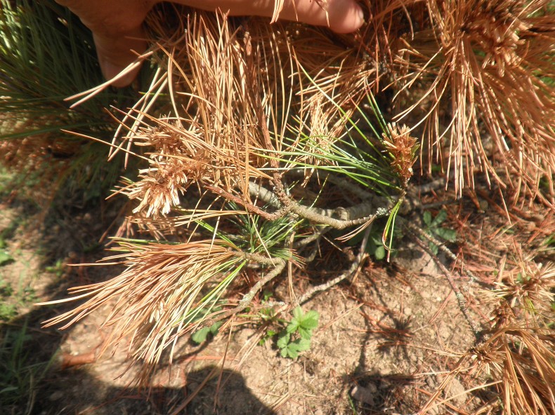 Petit pin toy (moi et les noms...) qui a "grillé" cet été... Tous les autres ont tenu le coup. A la base quelques aiguilles sont encore verte. D'après vous, c'est fichu ou j'arrose encore et encore, je coupe tout ce qui est mort, je...je...