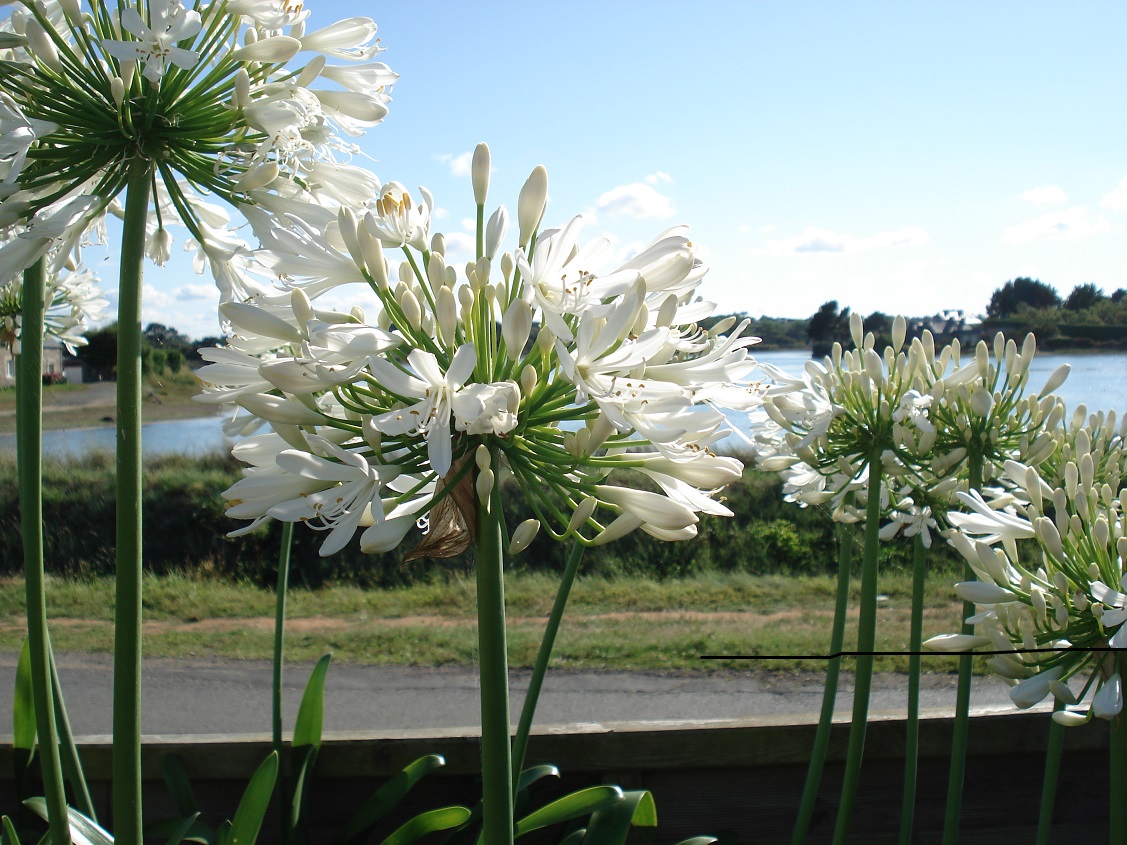 Agapanthe blanche ou bleue Aloés Véra Oliviers qui fleurissent et donnent chaque année de quoi satisfaire la consommation familiale