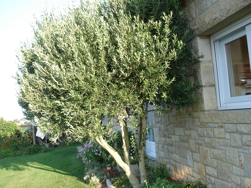 Bien que situé au point le plus au nord de la Bretagne, en bord de mer, juste la rue à traverser, je profite du Golfstream et d'un micro-climat exceptionnel en zone 10. Ce qui me permet de récolter chaque année mes olives et de cultiver agrumes et diverses tropicales en pleine terre. Si l'hiver il ne gèle jamais, très exceptionnellement -1°C pendant une heure au levé du jour, l'été la température dépasse rarement, sauf cette année, les 25°C.