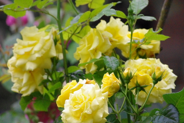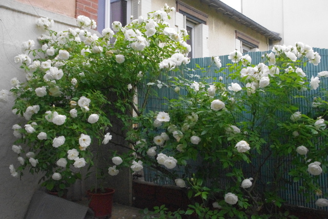 la photo 1 rosier Bernadette Lafond, la 2 rosier Paul Cezanne, la 3 rosier William Shakespear, la 4 et 5 rosiers dont leu nom m'est inconnu la 4 venant d'une bouture et la 5 rosier offert. bonne journée à tous